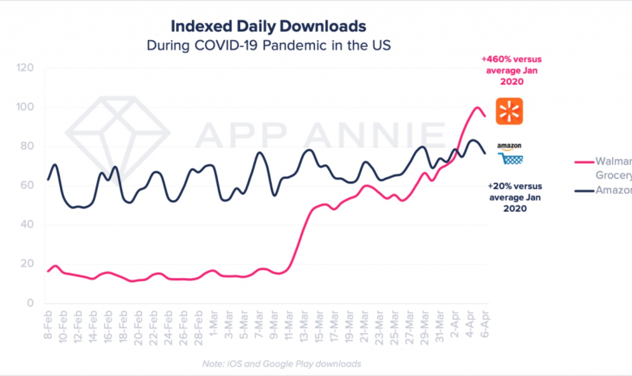 Grocery app usage has soared in recent months as customers have flooded e-commerce platforms and major retailers have made updates. In April, the Walmart Grocery app, which has since merged with Walmart's main shopping app, saw 460% growth in average daily downloads compared to January, according to data from App Annie. Target, which has expanded same-day grocery pickup to more than 1,000 stores in 47 states, saw a 98% increase in daily downloads of its app early in the pandemic.
