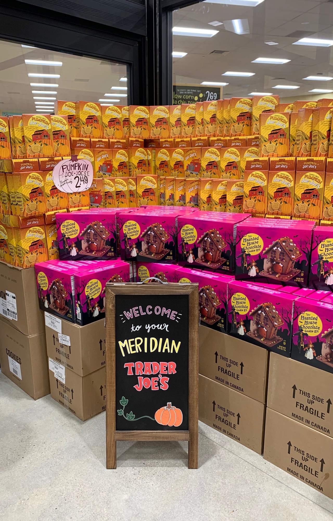 A display of haunted house cookie kits and Pumpkin Joe-Joe’s greeted shoppers upon entry, while associates welcomed shoppers and handed out free reusable bags.