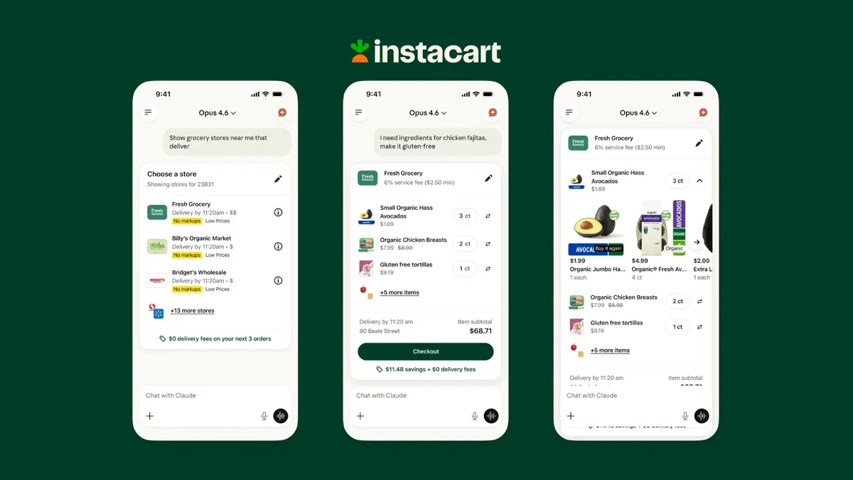 Instacart isn’t alone in its efforts to advance agentic AI in the grocery space. Walmart announced in late fall that it would work with OpenAI to allow customers to make purchases within ChatGPT’s new Instant Checkout feature. By March, Walmart had pivoted away from using that tool, opting to instead embed its commerce agent Sparky across ChatGPT and Google Gemini. While this could be easy to perceive as a warning sign that agentic commerce is on rocky terrain, Walmart’s move indicates that testing — and then tailoring — this type of AI-powered shopping experience will be key.