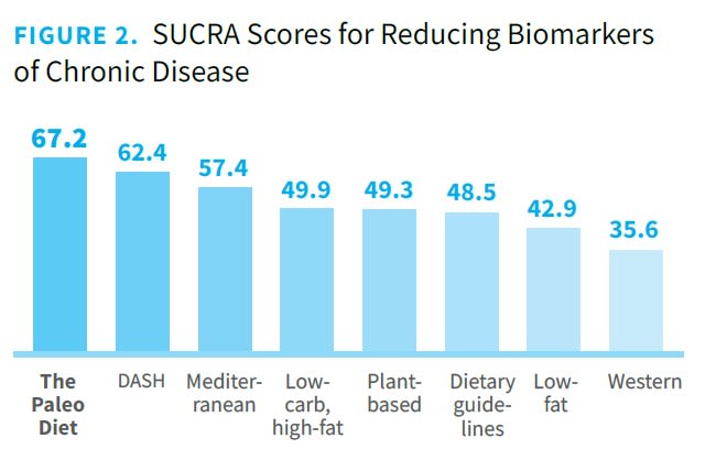 - The Paleo Diet performed best at improving the markers of chronic disease. Merging all the scores, The Paleo Diet was the healthiest diet with an overall SUCRA score of 67%, DASH at 62%, and Mediterranean at 57%. The Western diet ranked worst at 36%. SUCRA is a statistical scoring mechanism widely used by researchers to compare the relative effectiveness of treatments.